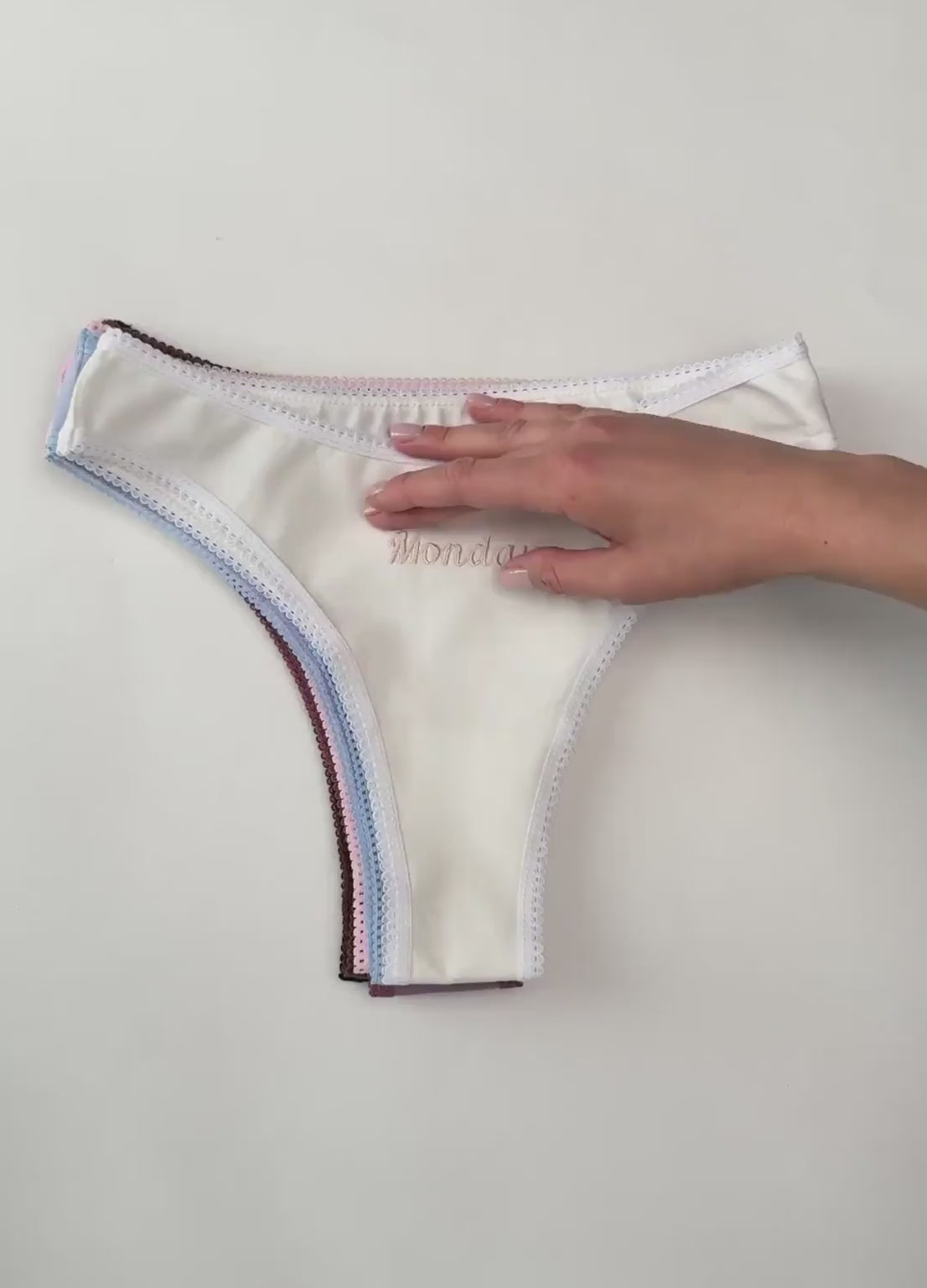 - The set includes 7 panties with day-of-the-week prints: Monday, Tuesday, Wednesday, Thursday, Friday, Saturday, Sunday.
