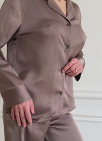 An elegant women's pajama set that combines comfort and sophistication. Made from soft, lightweight fabric, it feels pleasant against the skin and creates a cozy atmosphere.