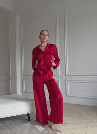 An elegant women's pajama set that combines comfort and sophistication. Made from soft, lightweight fabric, it feels pleasant against the skin and creates a cozy atmosphere.