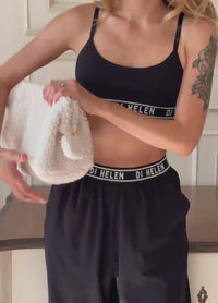 - Elastic waistband with branded inscription echoes the top design, creating a harmonious ensemble.